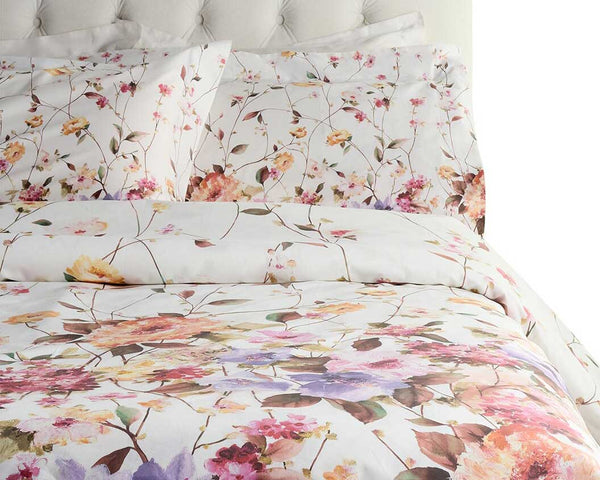 Wrap yourself in a garden of dreams with the Dea Italian Linens Certaldo Print Duvet Set. A sateen weave woven from 100% cotton with a silky 300 thread count, this enchanting bedding invites you to sink into a world of soft pink blossoms and timeless elegance. Whether you choose King or Queen, each set comes with a duvet cover and matching shams that transform your bed into a storybook escape.