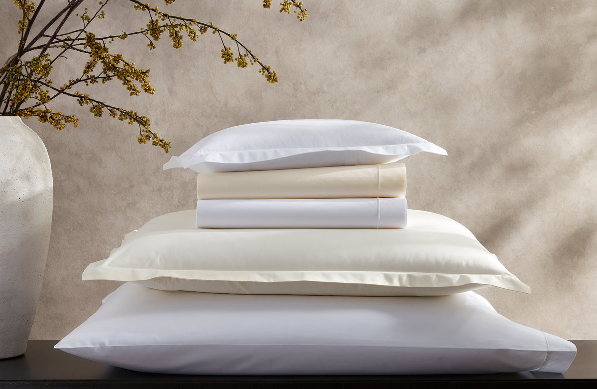 Woven in Italy of Giza Egyptian cotton yarns, Bergamo—Matouk's lightest weight percale—is renowned for being beautifully crisp yet sumptuous and smooth to the touch.