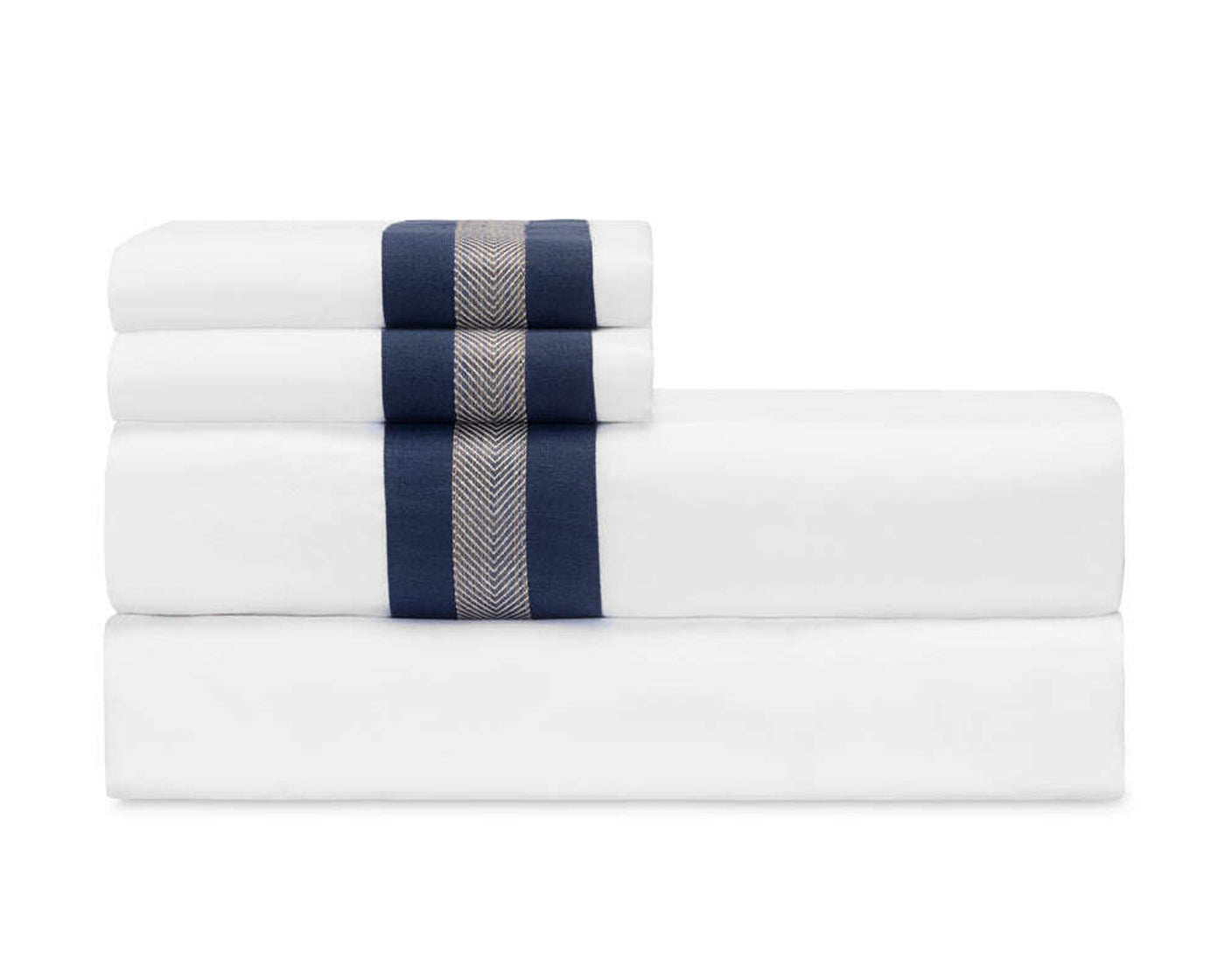 Harper | Flat Sheet available colors: Ash & Steel Gray, White & Navy Blue, White & Antique Cream.