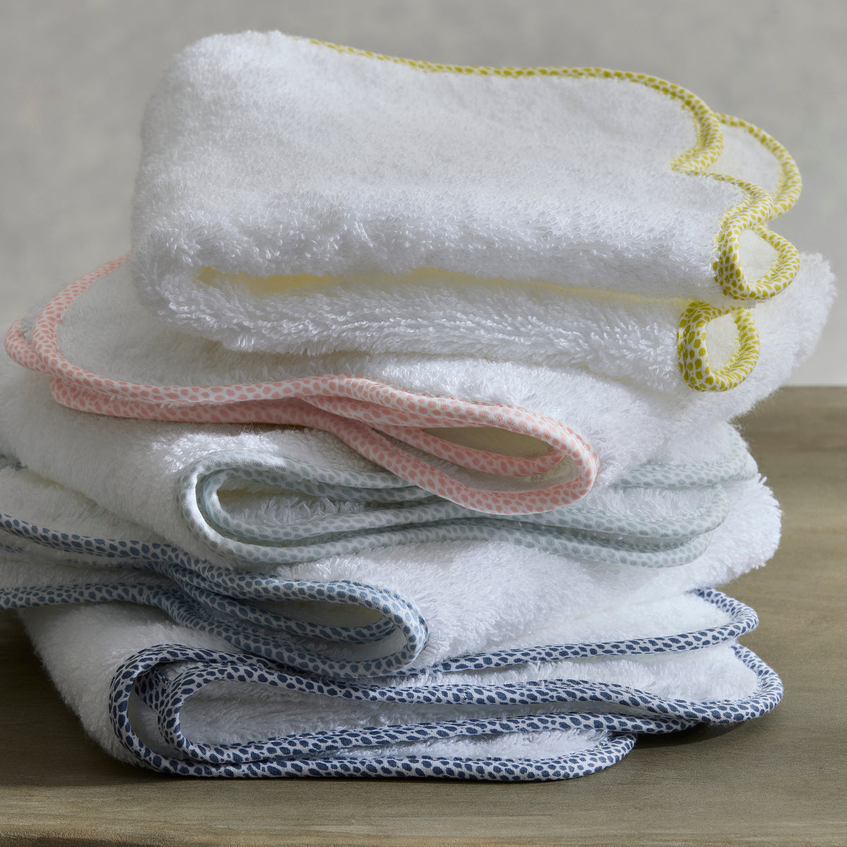 The Jasper Bath Collection is a spirited ensemble featuring Matouk's signature Jasper pebbled shagreen-inspired print on white Cairo terry in a scalloped silhouette. Available in a selection of colors, Jasper’s subtle, contemporary pattern is an eye-catching look.