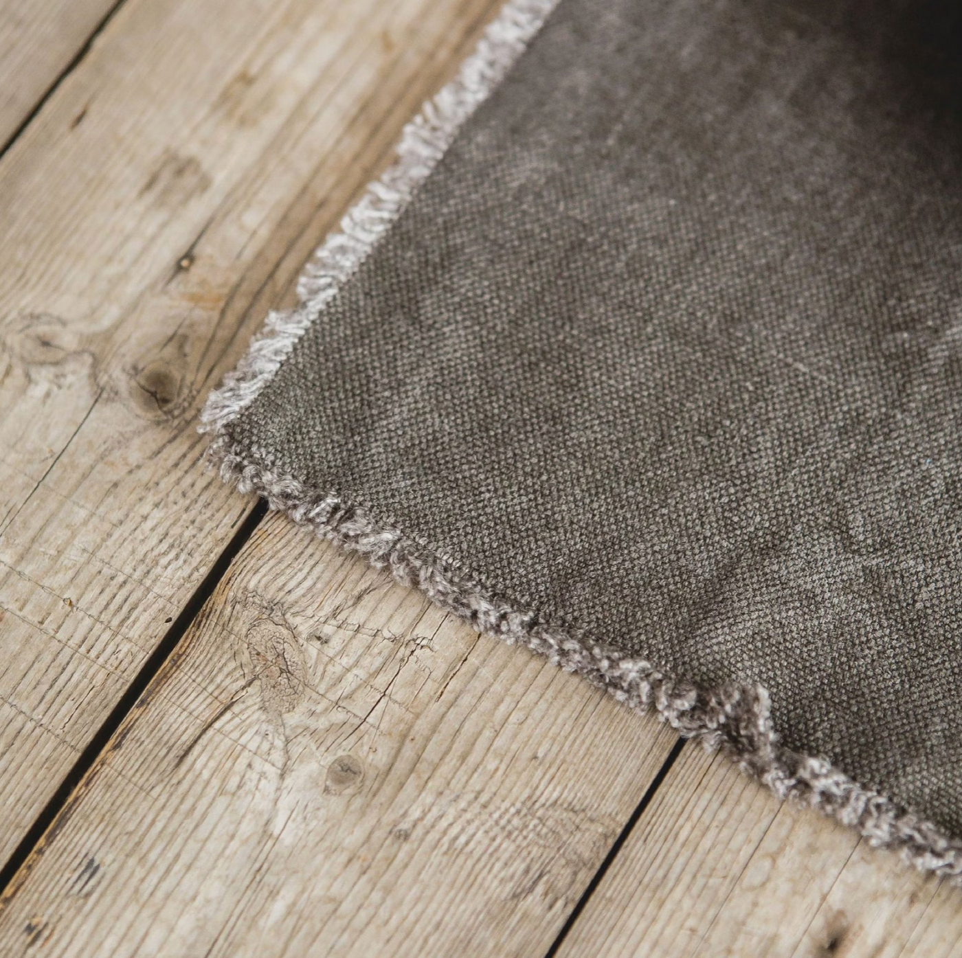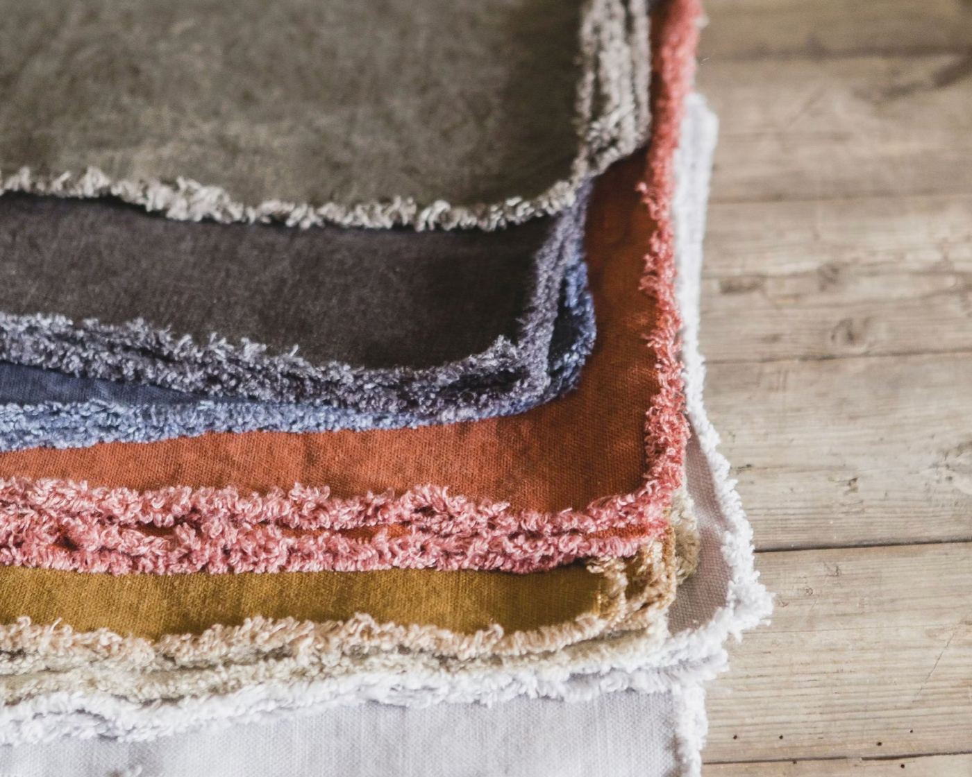The heavy-duty fabric in rich linen colours, will get more patina and worn in looking with washing and age. They have a fringe finish, because fringe is more fun!
