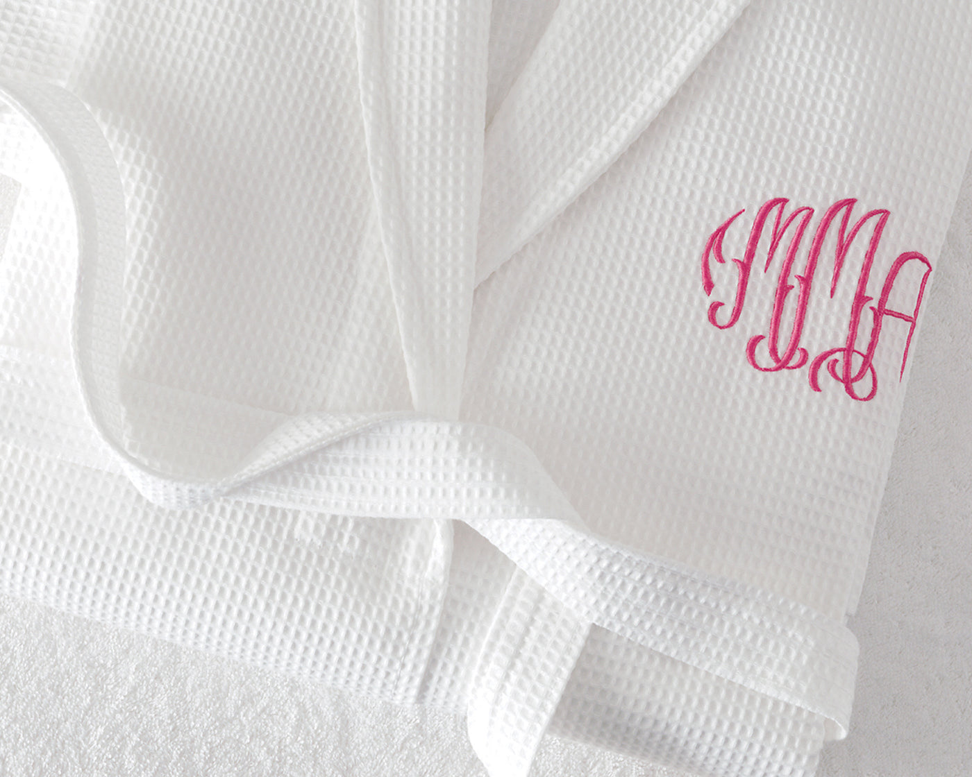 Spa-like robe for all occasions. 100% cotton waffle weave. If you would like your robe monogrammed, please contact us to discuss your options.