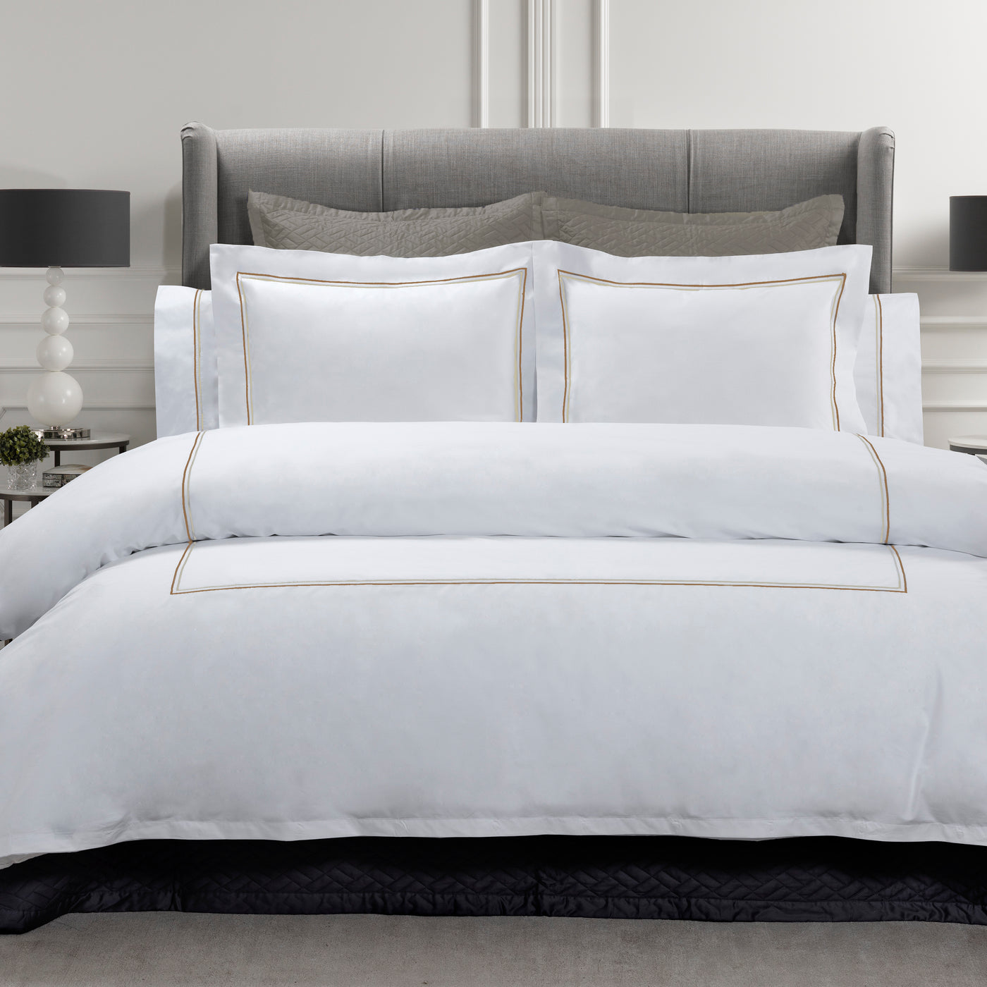 Indulge in the luxury of our Mimosa Embroidered duvet set, handcrafted in Italy with 210 thread count cotton in a percale weave. This exclusive set, found only at our Dreaming of Italy sale, boasts elegant double line embroidery in your choice of white or mocha.