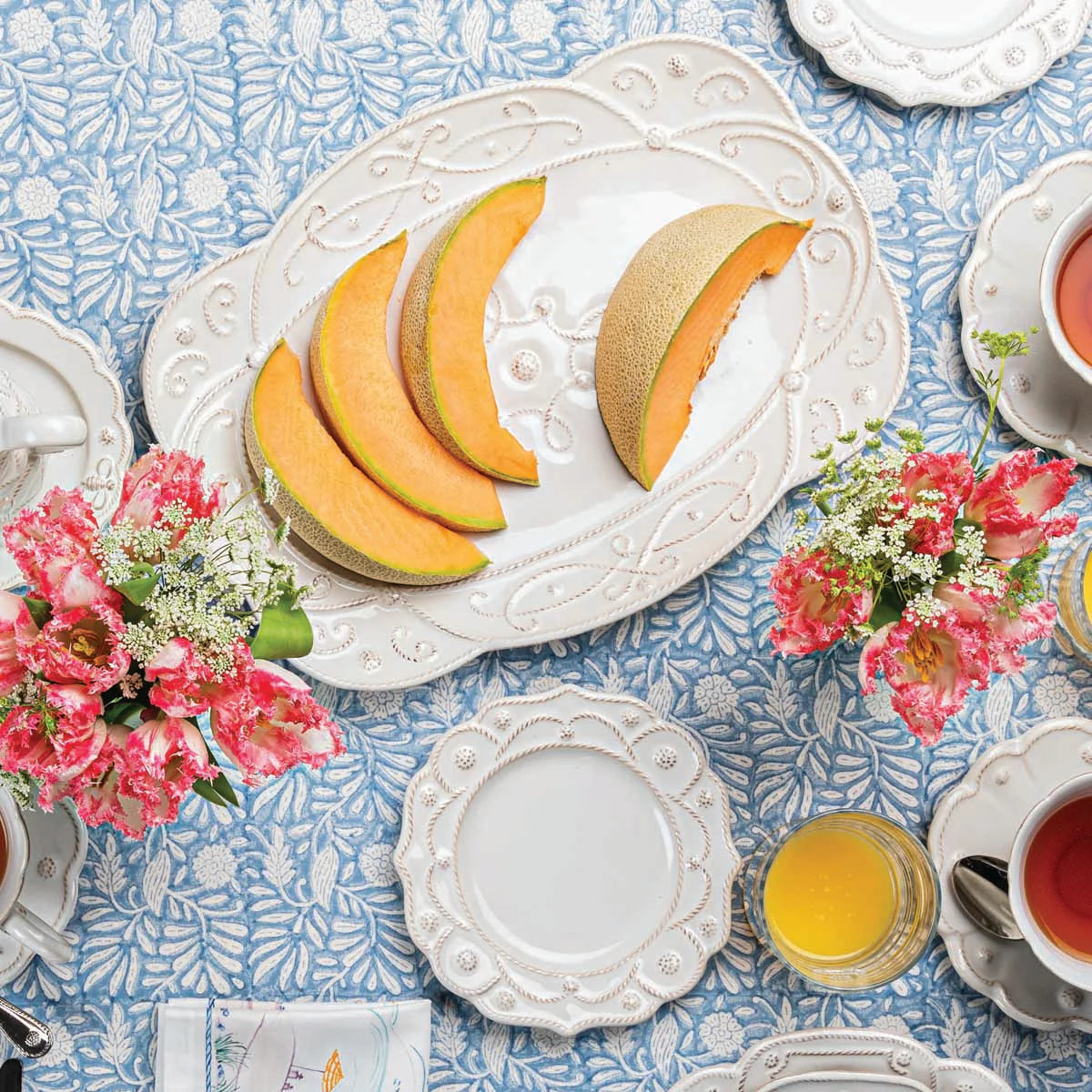 Like a stroll through the gardens of Versailles, the edges of these enchanting plates are a dance of orderly and whimsical, unfurling like petals to frame their contents and adding an eye-catching layer to table settings.