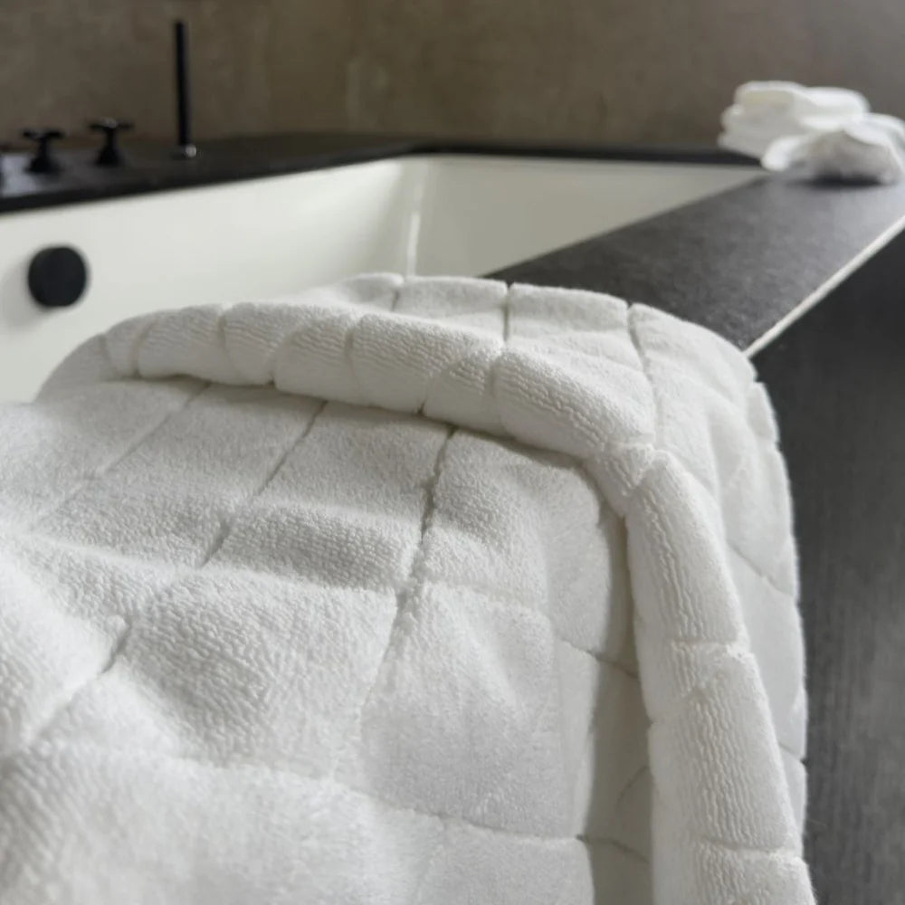 With a plush 1400 g/m² terry texture, rounded corners, and a clean bias finish, it perfectly complements the refined aesthetic of the STELLA towels.