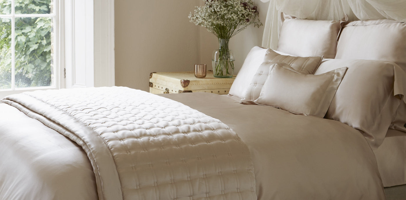 The Windsor coverlet complements the rest of Gingerlily's sophisticated silk bed linens perfectly. Beautifully soft, the stitching gives the collection a quilted and decadent look.