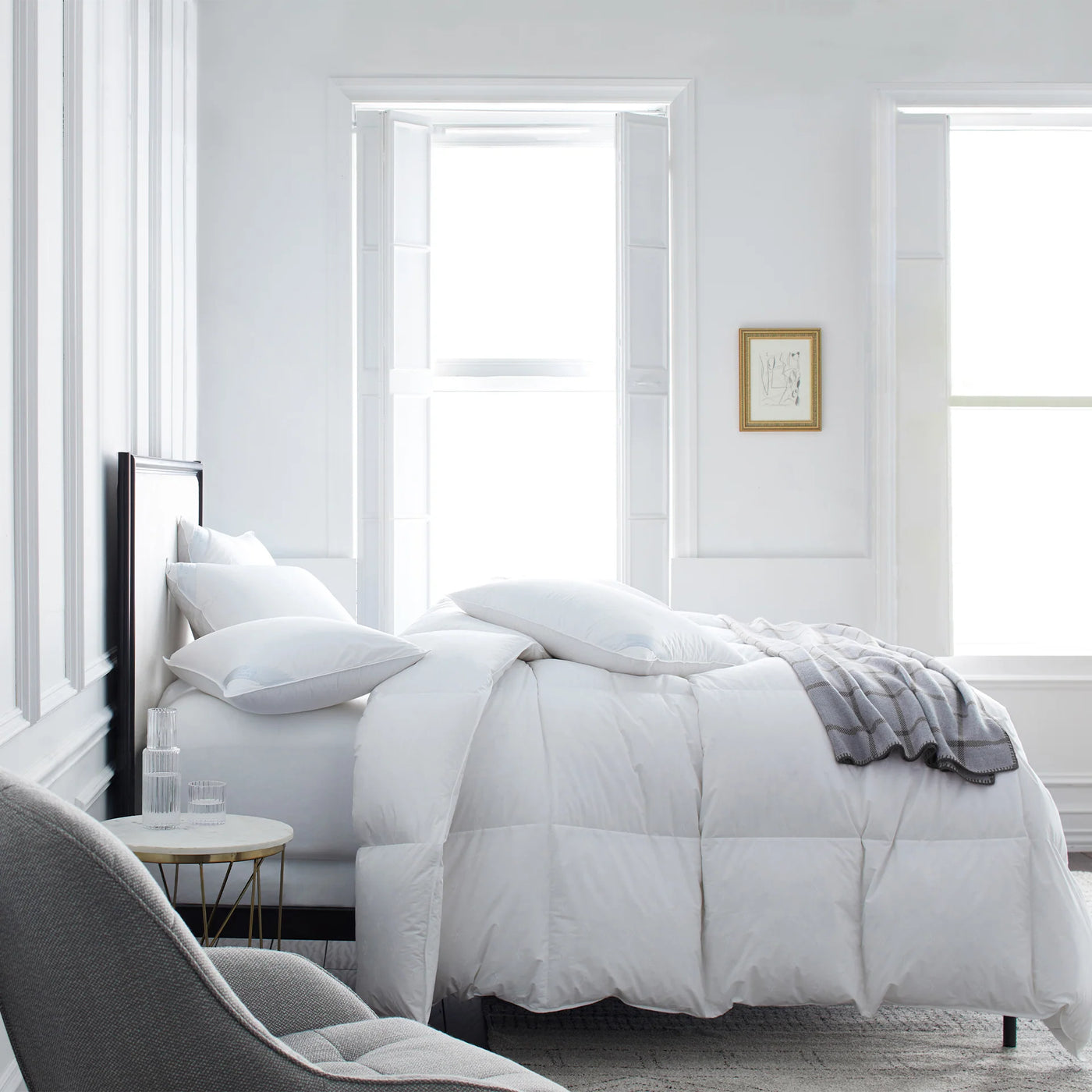A decadently dense and light filling of 750+-fill-power Polish white goose down delivers superior warmth and cloud-like loft, while artisan craftsmanship reflects our commitment to old-world quality and tradition.