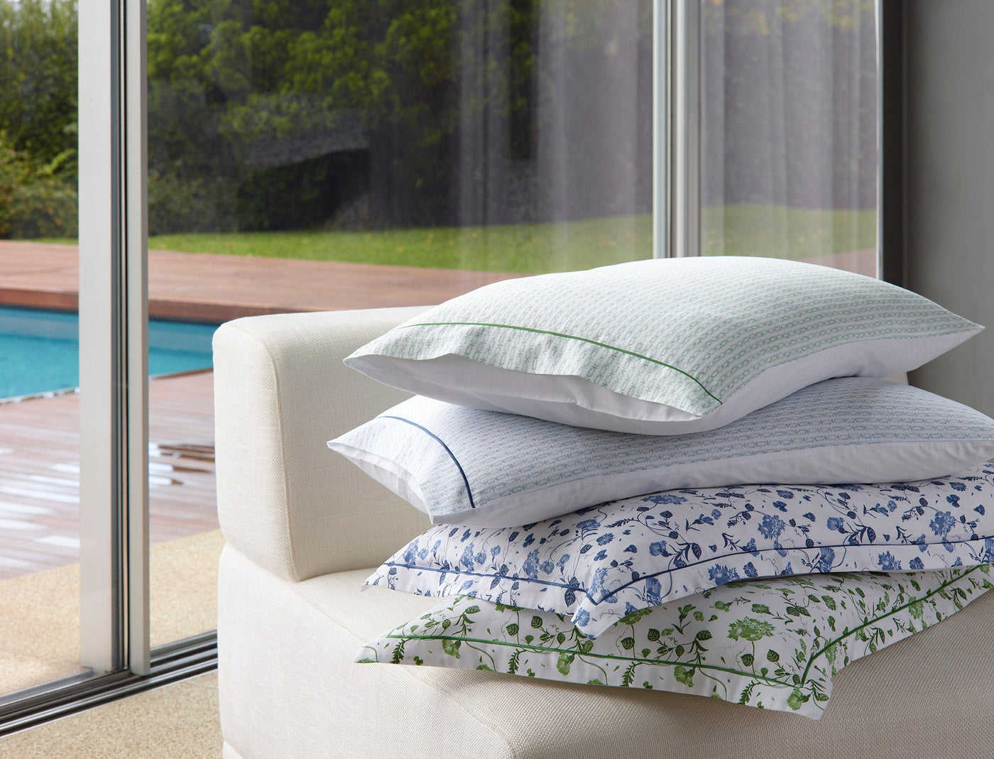 Bring the outdoors into your home with our new Vila Flor Boudoir, featuring delicate vines and blossoms printed onto our luxurious or 430-thread-count Egyptian Cotton sateen.